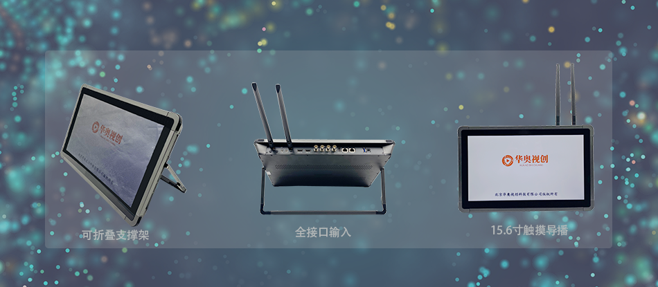 无线平板一体机配备15.6" 高清屏,带有触摸功能。屏幕分辨率1920*1080.液晶屏支持触摸功能,自带可折叠平板支撑架实现桌面笔记本效果。机器背面支持VESA安装接口可支持壁挂安装。带有整体厚度390*230*35mm。